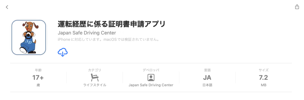 こちらの書類は郵便局からでも申請可能なようですが、私は運転経歴に係る証明書を取得するためのアプリから申請を行いました。